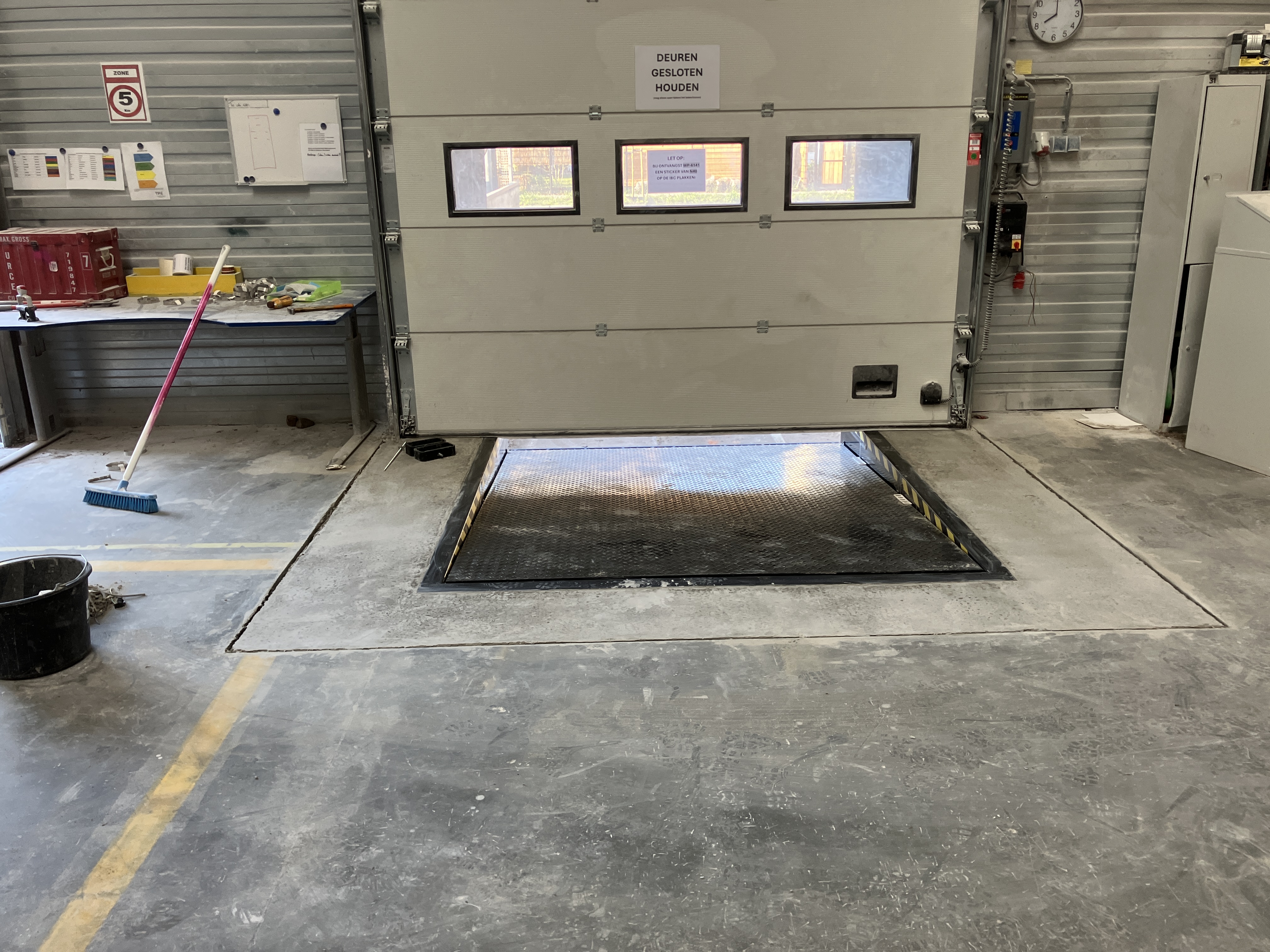 Allereerst is er samen met de leverancier gekeken naar een goede technische uitwerking met een goed plan om de overlast op de locatie zo veel mogelijk te beperken. Na de periode van voorbereiding zijn de werkzaamheden in 1 week uitgevoerd. Allereerst is er een deel van de bestaande vloer en onderzijde van het laaddock gesloopt. Vervolgens is de dock-leveler geplaatst en is het geheel weer netjes afgewerkt.