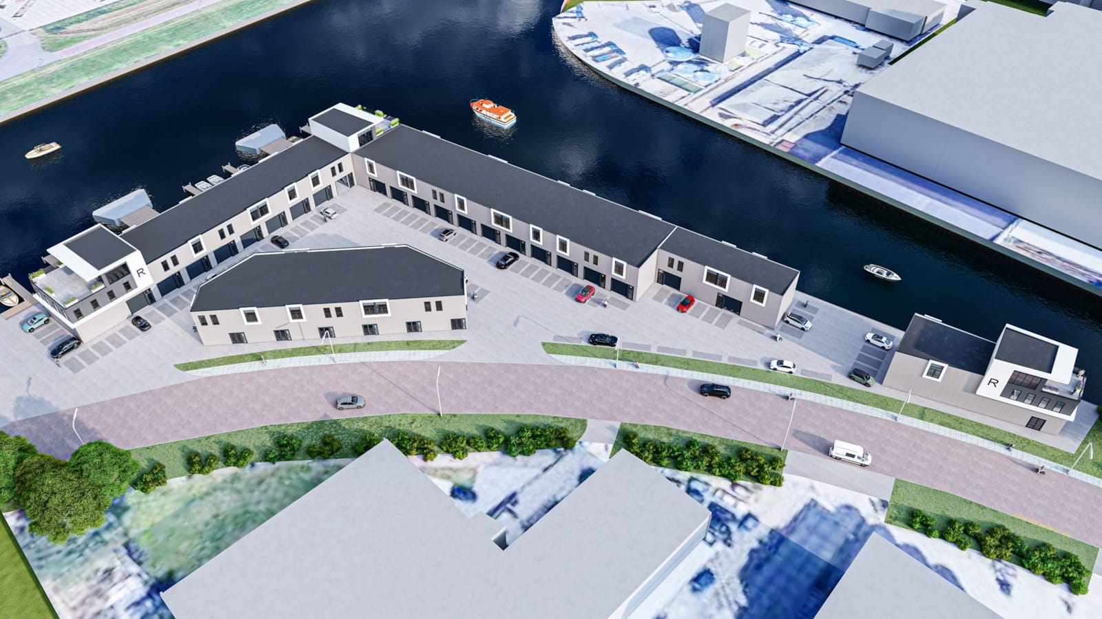 Het drie verdiepingen tellende casco bedrijfspand zal straks de functie van kantoorpand krijgen in combinatie met een werkplaats/opslag op de begane grond voor boten en vismaterieel.