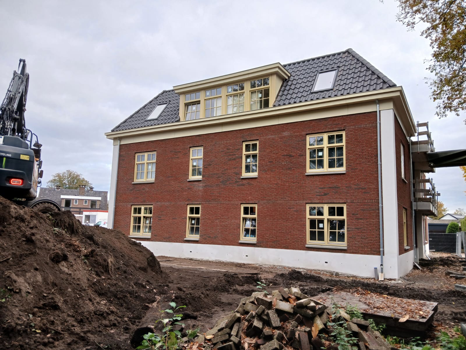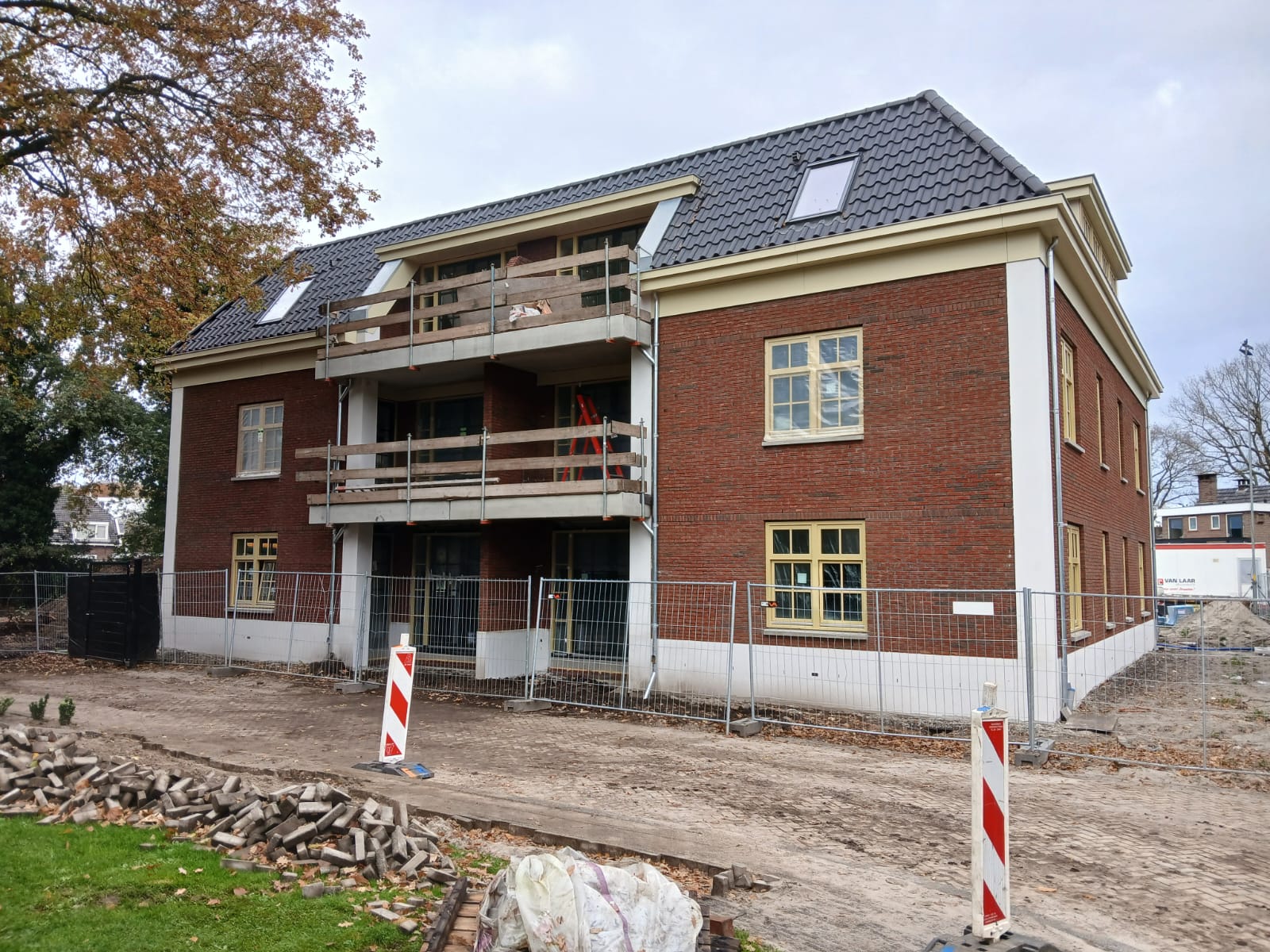 Het gebouw betreft 6 duurzame appartementen met daarbij 14 garageboxen en een vrijstaande woning. Nu binnen volop aan de afbouw wordt gewerkt, wordt er voor de rest volop gepland om het project tot een mooi einde te gaan brengen. Daarom zal binnenkort het grondwerk gedaan gaan worden voor de garages om deze vervolgens ook te gaan bouwen. De eindfase buiten betreft dan de aanleg van het terrein.